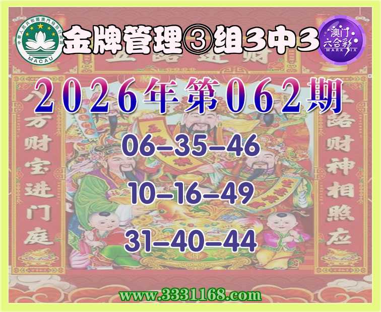 062期:《金牌管理》 🍔③组3中3🍔