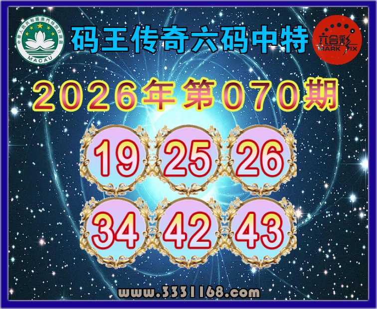 070期:【码王传奇】 🪢六码中特🪢【19.25.26.34.42.43】开:25准上榜高手