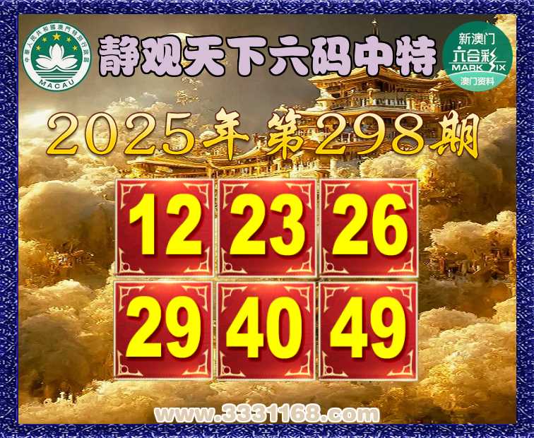 298期:《静观天下》 ♦️六码中特♦️【12.23.26.29.40.49】开:23准上榜高手
