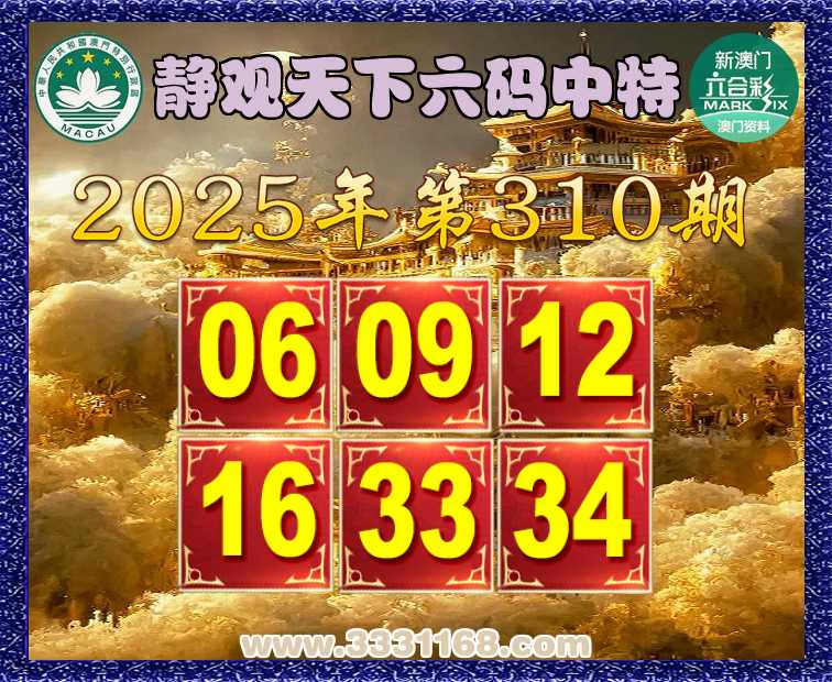 310期:《静观天下》 ♦️六码中特♦️【06.09.12.16.33.34】开:16准上榜高手