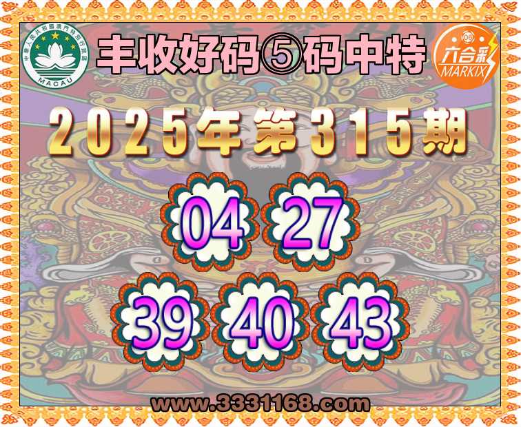 315期:《丰收好码》 🌳⑤码中特🌳【04.27.39.40.43】开:04准上榜高手