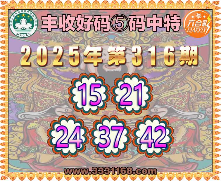 316期:《丰收好码》 🌳⑤码中特🌳【15.21.24.37.42】开:24准上榜高手