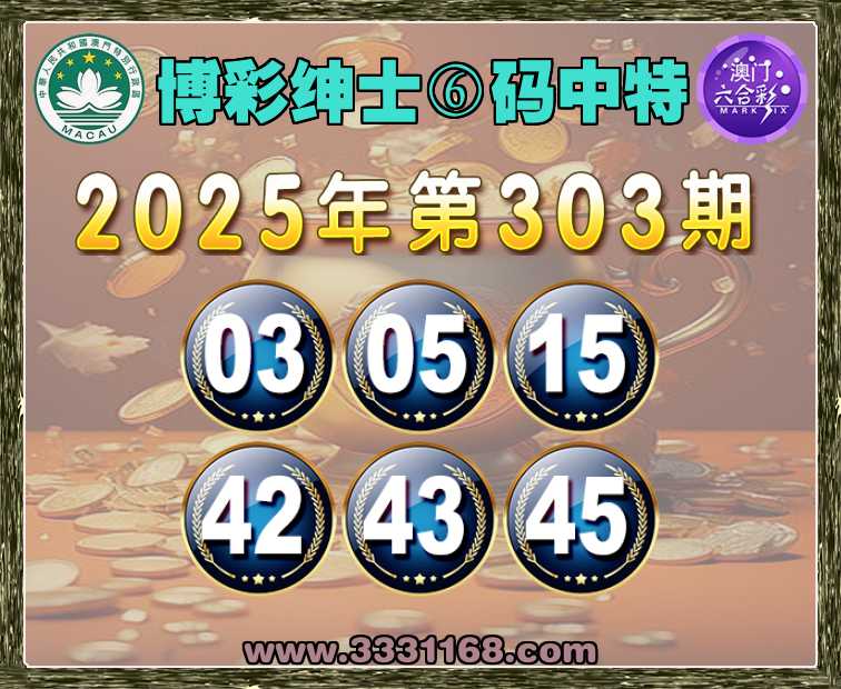 303期: 🍀『博彩绅士』 🍀⑥码中特🍀【03.05.15.42.43.45】开:15